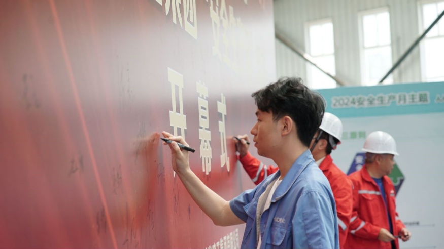啟動(dòng)儀式最后,經(jīng)開(kāi)投路面材料公司、文鼎公司職工代表分別作安全宣誓,全體參會(huì)人員依次在”人人講安全、個(gè)會(huì)應(yīng)急"主題展板上簽字。